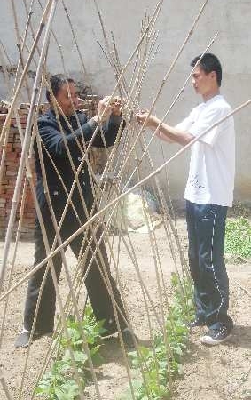 ▲朱鲁客正在帮父亲干活。