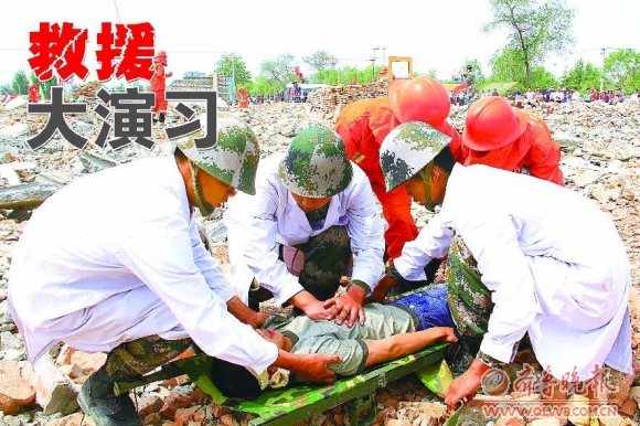 为增强民众防震减灾意识,5月15日,“全省暨菏泽地震应急救援演练”在菏泽举行,省市40余部门联合参演。 本报记者 徐升 摄