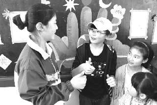 简单的手语建起沟通的桥梁 对贫困聋哑儿童捐助的活动结束后,小记者们与身边的聋哑学生一起走进他们的教室,了解他们的学习和生活。在教室里,小记者们和聋哑学生在纸上你一句我一句地交流着,很多小记者对聋哑学生们的手语产生了兴趣,问了许多关于手语的问题,现场就向聋哑学生学了起来。“我学会了‘你好’和‘你叫什么名字’这两个手语手势了,还有‘卧室’等等,今天学了好多,我还要多学点争取能与和我结对子的伙伴进行简单的交流。”活动结束后小记者万佳艺兴奋地向记者说道。临走前,小记者们纷纷向他们结对子的学生要了联系方式,“我们回去后要和他们常联系,经常帮助他们,让他们和我们一样快乐地成长。”小记者们向记者说出了自己的想法。