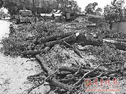 本报5月16日讯(记者 徐乐静 高倩倩) “迎宾大道上的老槐树被人砍了。”16日上午,市民高先生拨打本报新闻热线2600000说。记者调查发现,迎宾大道青年路目前正在修路,规划要求中间的快车道由原本的12米拓宽到15米,所以老槐树就得“搬家”,部分严重老化的槐树,则只能砍掉。