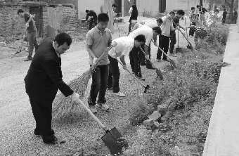 5月16日上午,临沂日报报业集团的51名员工来到河东区九曲街道蒋庄社区,利用自带的铁锨、扫帚等工具,对社区主干道路及周围进行了打扫,为创城贡献了一份力量。 本报记者 娄雅哲 摄影