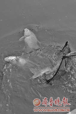 冯先生告诉记者,目前估计他的鱼塘里已经死掉2000多斤鱼了,而且还在不断死亡中,最终可能要损失上万斤。