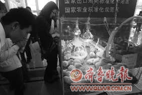 18日,在国际会展中心,一家食品企业将鸡舍养殖区等比例制作了一个玻璃柜,目的就是告知市民可以放心食用他们的食品。当日,第九届中国畜牧业展览会在国际会展中心开幕,全国畜牧饲料全行业、整链条、各层次的相关企业来青参展,参展商用各种方式来展示自己企业的特色。 本报记者 杨宁 摄影报道