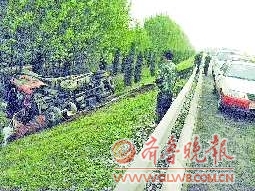 18日凌晨,济聊高速公路发生一起两车追尾交通事故,两车冲出护栏,翻入高速路边沟,事故造成1人死亡。 本报记者 李继远 通讯员 于皓 李波 侯勇 摄影报道