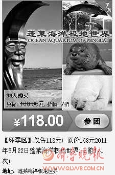 杨女士说以蓬莱仙境游为例,网站报价118元,大大低于旅行社和景点之间的协议价。“这个价格严重扰乱了市场秩序。”据了解,威海目前有旅行社100余家,各家旅行社都开通了一日游,团购网站推出的威海周边一日游大大地冲击了正