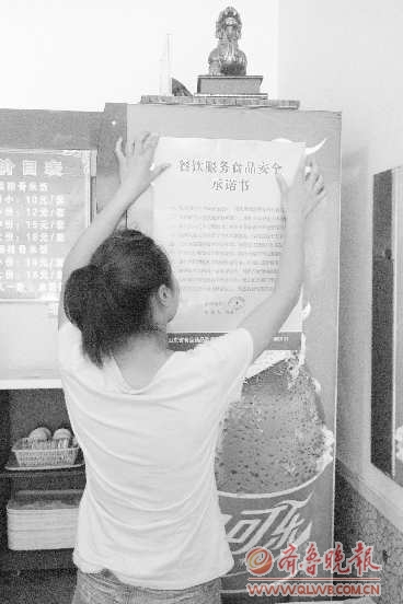 从5月12日开始,枣庄市各级卫生监督部门已经开始到餐饮单位进行相关的检查工作,督促商家自觉张贴《餐饮服务食品安全承诺书》以及所使用的食品添加剂品种名单。如果店内餐饮食品没有使用食品添加剂,可以不予张贴。