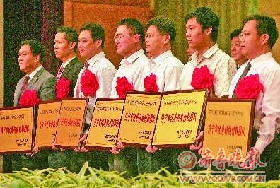 本报济宁5月18日讯(记者 姬生辉) 18日,济宁市召开科学技术奖励大会,奖励2010年度为济宁市科技事业发展和现代化建设做出突出贡献的科技工作者和优秀创新团队。山东润峰集团新能源科技有限公司总经理李青海、济宁市植物保护站副站长苏加岱荣获济宁市科学技术最高奖,每人获奖金20万元。