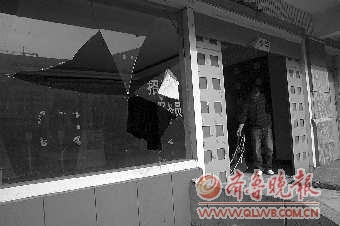 5月18日,记者来到了事发地点海滨六路,看到该沿街商用房的锁连同玻璃门已经被砸掉,玻璃窗也被砸碎了。房间里面除了有一些玻璃碎片外,并没有其它的东西被砸。