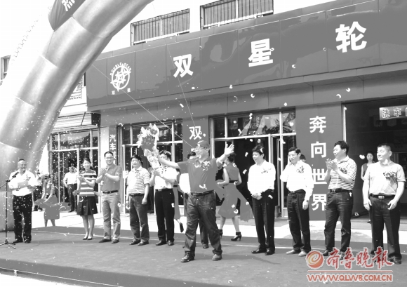 18日上午,双星轮胎泰安旗舰店在泰山大街举办庆典仪式。即日起到6月18日,双星轮胎泰安店将推出各种优惠活动。图为开业现场。