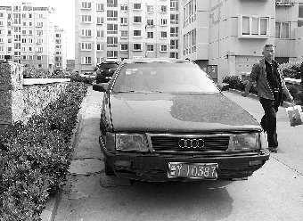 本报5月18日讯(见习记者 靳松) 在阳光富景花园7号楼附近,停了一辆破奥迪车,轮胎瘪了,排气管也掉了,已经好几个月了,一直没人理。