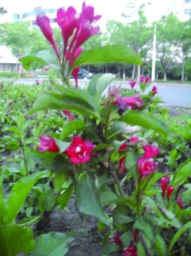 名称:红王子锦带科属:忍冬科 锦带花属习性:落叶灌木,夏初开花,花朵密集,花冠胭脂红色,艳丽悦目,开花盛期5月到7月。喜光,抗寒,抗旱,管理较粗放,也较耐阴,对土壤要求不严。所在路段:府前街、胜利大街、南一路。栽植数量:1.5万株。