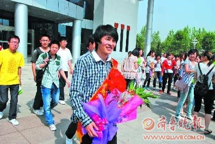 18日上午9时许,滨州学院教育科学系大三学生翟兆春告别老师和同学们,前往济南为一名白血病患者捐献造血干细胞。据悉,翟兆春是2010年以来滨州市第四个造血干细胞志愿捐献者。图为翟兆春的老师和同学们为他送别。