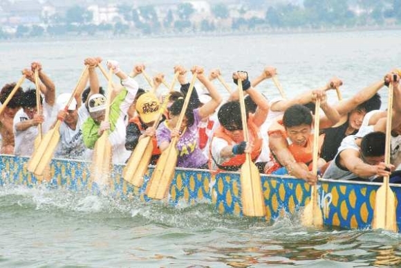 6月5日至6日,第四届中国大学生龙舟锦标赛将在天津举办,届时将有全国各地二十多所院校的50余支男、女代表队千余人参赛。图为聊城大学龙舟队正在东昌湖内备战训练。 本报记者 李军 摄影报道