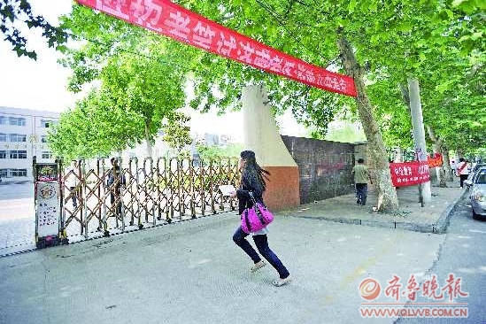 22日上午,省属事业单位招聘笔试举行。在济南八中考点,一位考生忘带身份证,幸好家人及时送来,8点30分,开考时间已到,该考生飞快地冲进考场。本报记者 王媛 摄