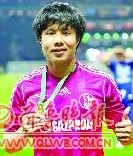 蒿俊闵展示冠军奖牌,他在德国杯决赛中未列入出场大名单。