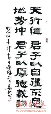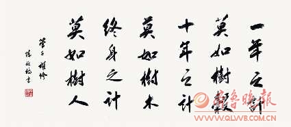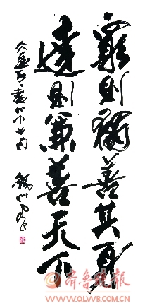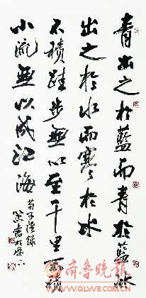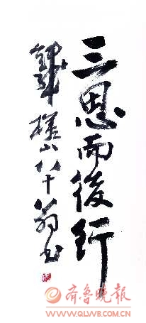 由山东省省直机关青联、齐鲁晚报、山东电视生活频道、大众网主办,山东道通置业投资有限公司协办的“道通山水泉城杯·国学问策·经典名言名家书法展”,将于5月26日至29日在山东省档案馆经十东路新馆举行。“国学问策·名句书法大赛”获奖入围作品,将与110位特邀书画名家作品一并展出。现将部分书画名家作品予以刊登,以飨读者。