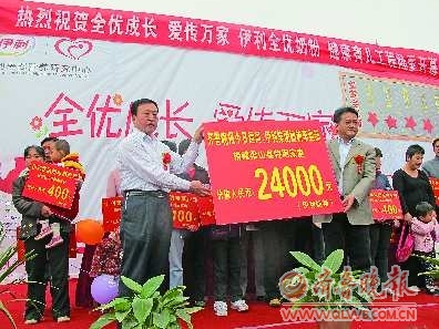 21日,“伊利全优奶粉健康育儿工程”大型公益捐赠活动走进梁山,在“六一”节前夕为贫困家庭送去一份礼物。该活动是由本报《今日运河》编辑部联合伊利集团奶粉事业部共同举办,现场对梁山县60户贫困婴幼儿家庭进行了爱心捐赠,每户捐赠物品400元,现场共送出爱心奶粉24000元。本报记者 李倩 摄