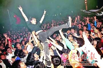 比,本场演出主办方出动了摇臂摄像机和车载大屏幕,这两样设备可以对现场细节进行跟踪拍摄,台下乐迷和台上乐手的特写,都可以在大屏幕上呈现出来。而且本场演出的观众,年轻人占了绝大多数,这也是上一次演出不曾出现的。