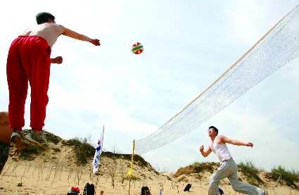 沙滩排球成为套子湾沙滩上一道风景线。本报记者 赵金阳 摄