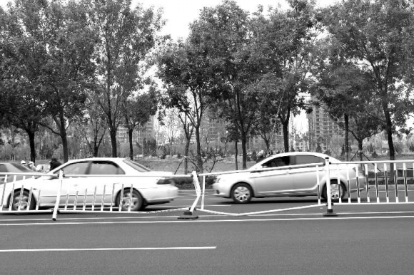 5月21日下午,记者在黄河路上看到,两段新安装的护栏变了形。一位路过的市民说,这段护栏是上周被撞坏的。采访中,多数市民呼吁相关部门尽快将其修复。 本报记者 聂金刚 摄影报道