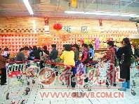 自五月份以来,鸡蛋价格持续上涨,目前已经涨至每斤4.6元。据了解,天气转热产蛋量下降、小鸡未长大,是导致鸡蛋供应量减少的主要因素。市区各大超市针对鸡蛋高价位推出不少优惠措施,引来不少市民抢购。图为22日,市区一超市生鲜专区前,市民抢购鸡蛋。 本报记者 段学虎 张大宁 摄影报道
