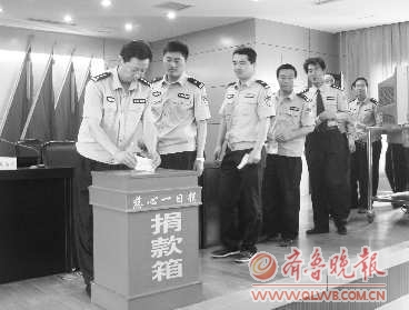5月24日上午,枣庄市市中区公安分局举行了“慈心一日捐”善款捐赠仪式,此次活动共有353人参加,一些因公外出无法赶到现场捐款的职工,也委托他人代为捐献。短短半天时间,共募得捐款44800元。