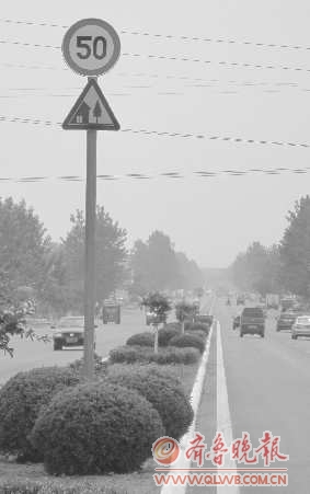 24日上午,记者驱车到这一路段进行了实地探访。在往东行驶的路上,进入此路段后,限速50的牌子很容易就能看到。但在往西行驶的路上,记者一路仔细寻找路边的限速标志,直到行驶到很近的距离时,才看到靠路边设置的限速标志,要是不仔细看的话,的确较难发现。