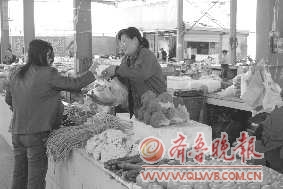 24日上午,在市中区龙头市场,除了摊贩们免费向市民提供超薄塑料袋外,记者还发现了开着三轮车向摊贩们兜售塑料袋的商家。