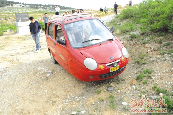 3点38分,肥城市刑警大队民警接到报警后立即赶到现场,看到尸体躺在一片墓地旁。通过现场勘查,民警确定死者是被人用匕首之类的凶器刺进心脏导致死亡,死者颈部也有两处致命伤,死亡时间应该是当天早上。尸体旁边停了一辆红色三轮出租车,经过搜查车上的证件,民警证实,死者是潮泉镇出租车司机孙某。