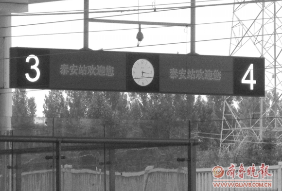 24日,记者来到高铁泰安站看到,站里的广播系统已经开始调试,月台上电子显示屏显示的字样已经由原来的“泰山西站欢迎您”改为“泰安站欢迎您。”
