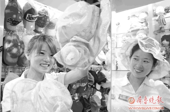 随着气温逐渐升高,由热气候、热人流、热消费组合成的“夏日经济”逐渐升温。图为一家精品店将太阳帽、太阳镜等防晒产品摆到了最显眼的位置。
