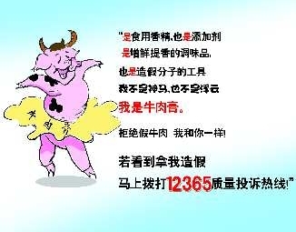 作为复合型添加剂,我有苦衷,但我也有良心,在这里我想提醒广大消费者,用我造假生产出来的牛肉,在外观上是有一些破绽的。消费者可以从色泽、气味、黏度、弹性等多个方面进行鉴别。比如,牛肉脂肪呈白色或乳黄色,比猪肉的脂肪明显要少。一般来说,牛肉的纤维长度较长,肉质粗且紧凑。而猪肉的纤维长度较短,肉质细且松散。食用牛肉时感到肉老,食用猪肉时感到肉嫩。消费者在购买牛肉时,一定要认清这些特点,尽量不要购买颜色鲜艳的食品,那样就可以避免买到“假牛肉”了。