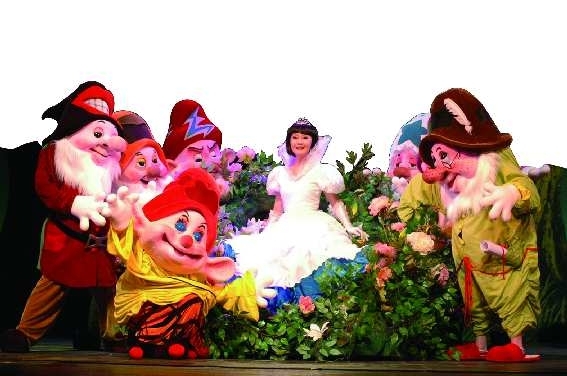 造型可爱的小矮人,虚实结合的真人动画,神秘的森林城堡……由中国儿艺创作推出的人偶童话剧《白雪公主与七个小矮人》堪称史上最具视觉效果的一个版本。为了突出鲜明的个性特征,剧目特别注重角色造型的塑造,漂亮的白雪公主穿着华丽的服饰,光彩照人;七个小矮人人偶的手脚、眼睛、嘴巴都可以动,面部都有丰富的表情,这些个性鲜明的小矮人表演起来最具难度,因为身材比例问题,演员在套上人偶后,头部其实在小矮人的大帽子里,而人偶的眼睛和嘴则在演员的肚子上,所有俏皮的表情都由演员的两只手操纵演绎,难度系数非常大。