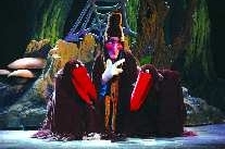 而剧中的大坏蛋女巫造型十分吓人,据悉,为了让女巫在形象上更加凶恶、恐怖,导演特意放弃真人出演,而换成了人偶。藏在黑色袍子下的是一张可怖的脸,尖尖的鼻子和下巴、凶狠的眼神、惊悚的声音……尤其是女巫和她的仆人乌鸦出场时,黑暗的舞台和幽幻的声响营造出一个相当吓人魔鬼之城,提醒所有小朋友观看时要当心哦!