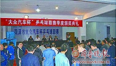 5月21日,季度赛颁奖仪式在大众俱乐部成功举行。该活动是由菏泽市总工会主办,上海大众菏泽众望4S店、上海大众菏泽众通4S店、斯柯达菏泽众捷4S店、一汽大众宝捷4S店承办的一项贯穿全年的乒乓赛事。