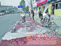 近日,有市民反映,市中区首条彩色环境综合整治样板路———玉兴路被污水污染。市中区环保局对此进行了调查,并勒令弄脏路面的沿街业户进行清洗。