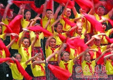 24日,山师附小,四年级十二个班的孩子们依次上台,唱响了校园红歌。这是该校发起的“红色伴我成长,红歌唱响校园”班级合唱比赛。