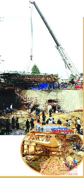 发掘工地业务指导孙明告诉记者,为保护古沉船船底在整体吊装过程中的安全,他们制作了一个长14.6米、宽2.5米、高1.3米的钢笼,将船底包裹后放入其中,完成之后钢笼重约4.5吨。经过10分钟的努力,古沉船船底在离开发掘现场地面约5米的地方,进行了180度调整,随后稳稳落在运送船底的拖拉机上。
