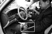 在董嘉永开来的教练车上,记者一眼就看到了方向盘下方的一个“杠杆”,教练董嘉永介绍说,这个东西叫“手动驾驶汽车辅助装置”,这个装置安装在自动挡的汽车上,腿部有残疾的人可以通过这个装置用双手控制刹车和油门。董嘉永说,左手向上搬起左侧抬杆,车子就会刹车,而右手向上搬起右侧抬杆,就会加起油门。将“伊兰特”作为教练车,可比普通的桑塔纳高级多了,这令周围旁观的市民也羡慕不已。一位残疾学员说,条件好了,就得更加认真学,练就好的驾驶技术。