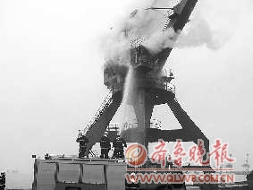 本报96706热线消息(记者 许君丽 通讯员 姚经邦) 24日下午,荣成市石岛新港码头一高空门机吊驾驶舱发生火灾,威海消防十中队迅速出动2车14人赶赴火灾现场,外扫内攻,上下合击,成功将大火扑灭,未造成人员伤亡。目前,事故原因正在进一步的调查之中。