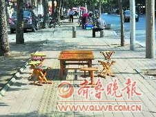 桌子摆到了人行道上 本报见习记 渤海八路路边一家烧烤店的
