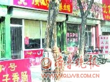 记者 于荣花 王晓霜 摄影报道拖把挂在绿化树上晾晒 本报见习 渤海八路一家店铺前洗过的