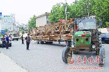 据介绍,从位于和平路与中华路交叉口的古船发掘现场,经中山路到位于华英路的菏泽市博物馆门口,全程将近1500米,共需经过3个红绿灯,3个路口,载着钢笼的拖拉机行驶了约20分钟。