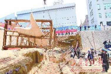尽管当天的天气有些阴沉,很多附近的居民还是一大早来到了现场。9点13分,在古船起吊的这一霎那,天气转眼放晴,不少前来观看的市民为之称奇。