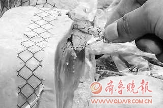 近日,合肥一家五星级酒店在采购的“雨润”牌方火腿中,发现了包装塑料膜和金属卡扣。该酒店厨师长认为,塑料膜及金属卡扣以这种方式混杂到火腿里,看上去更像是在生产火腿肉的时候就已经搅进去了,也就是说“还没到包装环节,这些东西就已经在里面”。有关人士据此怀疑雨润集团用过期肉加工火腿。