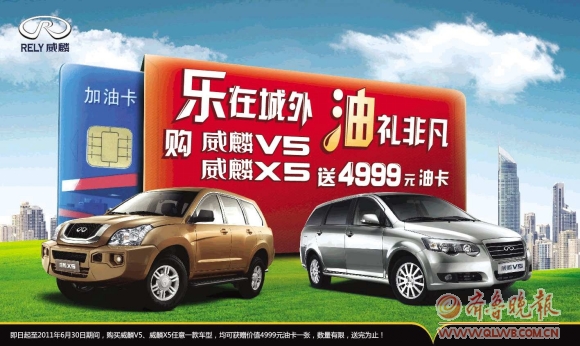目前,威麟V5、X5的联合促销正火热进行中,凡购买任意一款车型,即可获得4999元的油卡。在济南威麟4S店,记者了解到,目前威麟V5的购车人群中,家庭用户明显增多,成为带动销量增长最大驱动力,“特别是在五月这个春夏出游高峰时期,无论是像威麟V5这样的宽大七座MPV,或者是威麟X5全领域SUV,都非常适合全家出游,