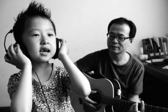 现在,坐在椅子上,郭立忠又抱着吉他谈起了那首《老男孩》。在旁边玩游戏的馥玮也不时跟着爸爸的吉他声,哼上几句。“那天实在太紧张了,发挥得不好”。唱完,郭立忠满脸遗憾地说,“本来我以为第一轮,