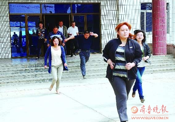 5月26日,为提高单位人员应对突发性地震的反应能力,及时发现出现的缺陷和不足。牡丹区交通运输局当日举行了突发性地震疏散演练,数百名员工参加此次演练。图为牡丹交通运输局工作人员正从单位大楼撤离。