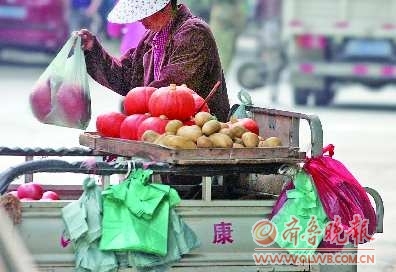 沿街叫卖的小商小贩、农贸市场里的蔬菜摊、社区附近的水果摊等,都是薄塑料袋使用的“重灾区”。26日,记者走访了济宁城区的吉祥社区、金城社区等一些农贸市场看到,各种蔬菜摊、水果摊前都挂满了各种规格的塑料袋,塑料袋的使用频率依然很高。