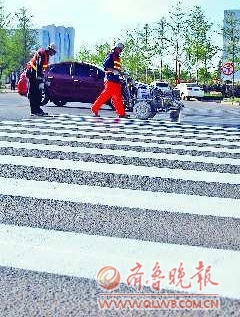 5月26日,在泰安路上,公路养护人员正在对缺失的斑马线进行修缮。据施工负责人介绍,此次修缮主要针对市区各大道路上缺失或者损坏较严重的标线。日照市正值创城之际,修缮标线美化道路,对保持一个文明整洁的城市形象具有推动作用。 本报见习记者 张照朋 摄影报道